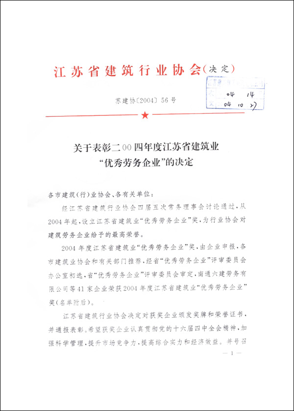 2004優(yōu)秀勞務(wù)企業(yè)