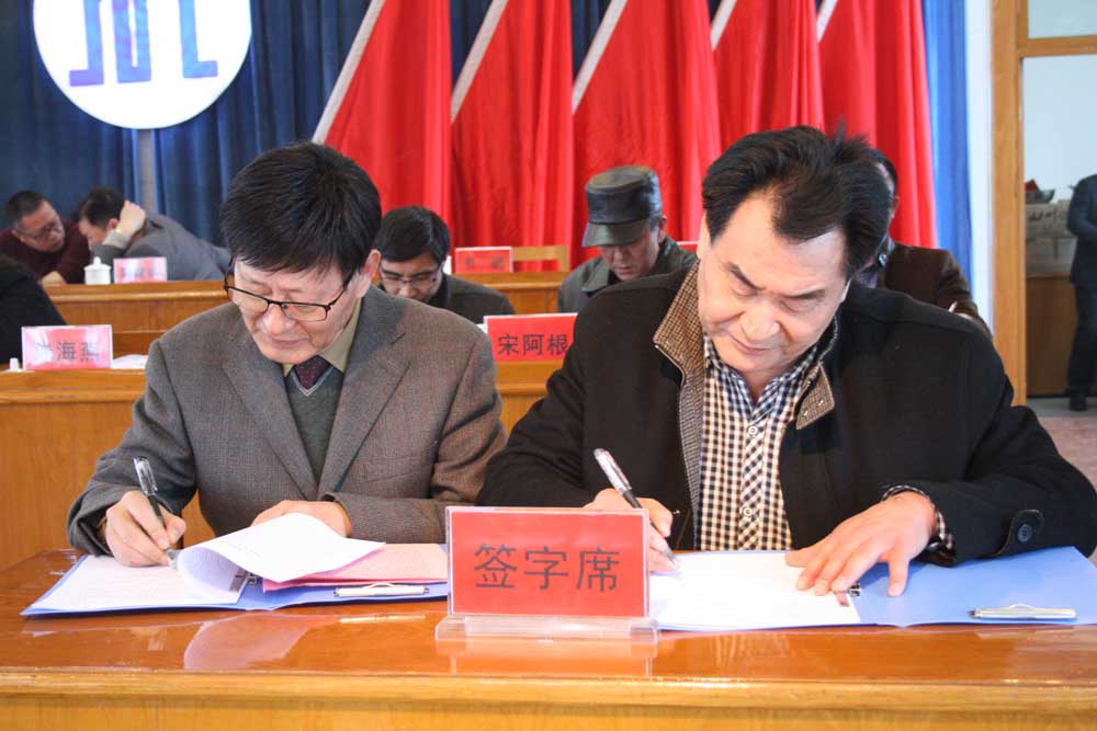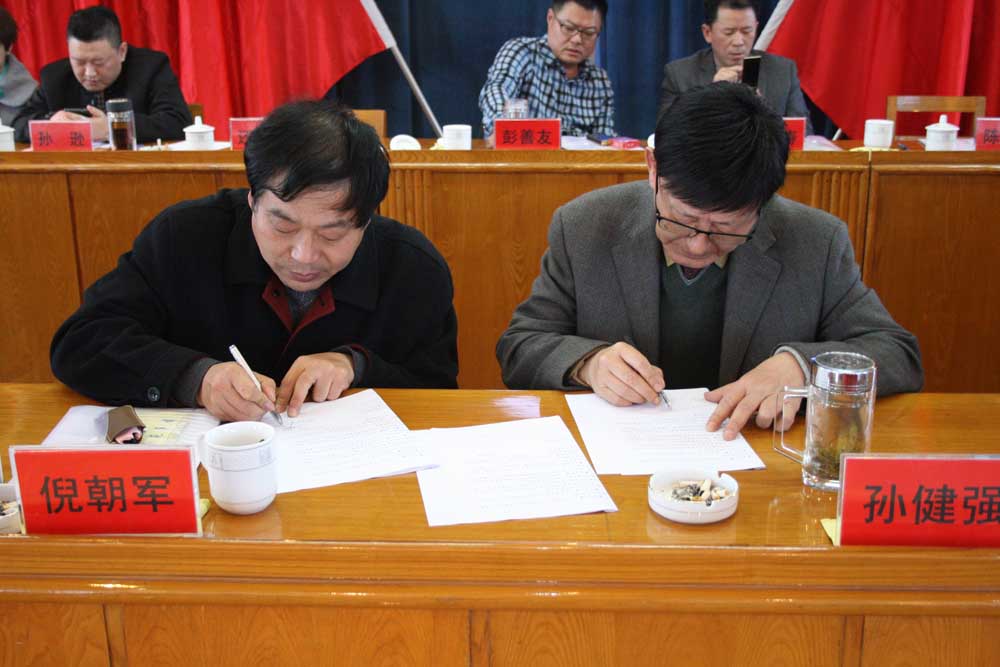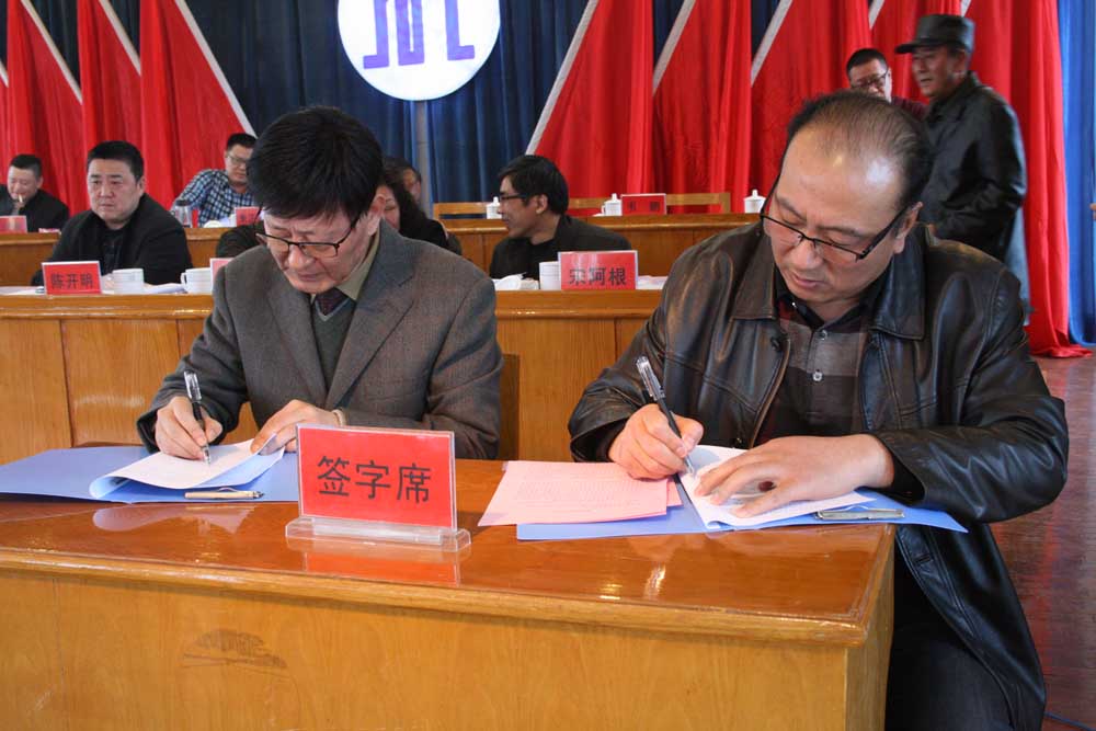 之后,各子、分公司承包經(jīng)營(yíng)責(zé)任人依次到主席臺(tái)上向?qū)O健強(qiáng)總經(jīng)理遞交承包經(jīng)營(yíng)承諾書,并簽訂2015年度承包經(jīng)營(yíng)合同書。